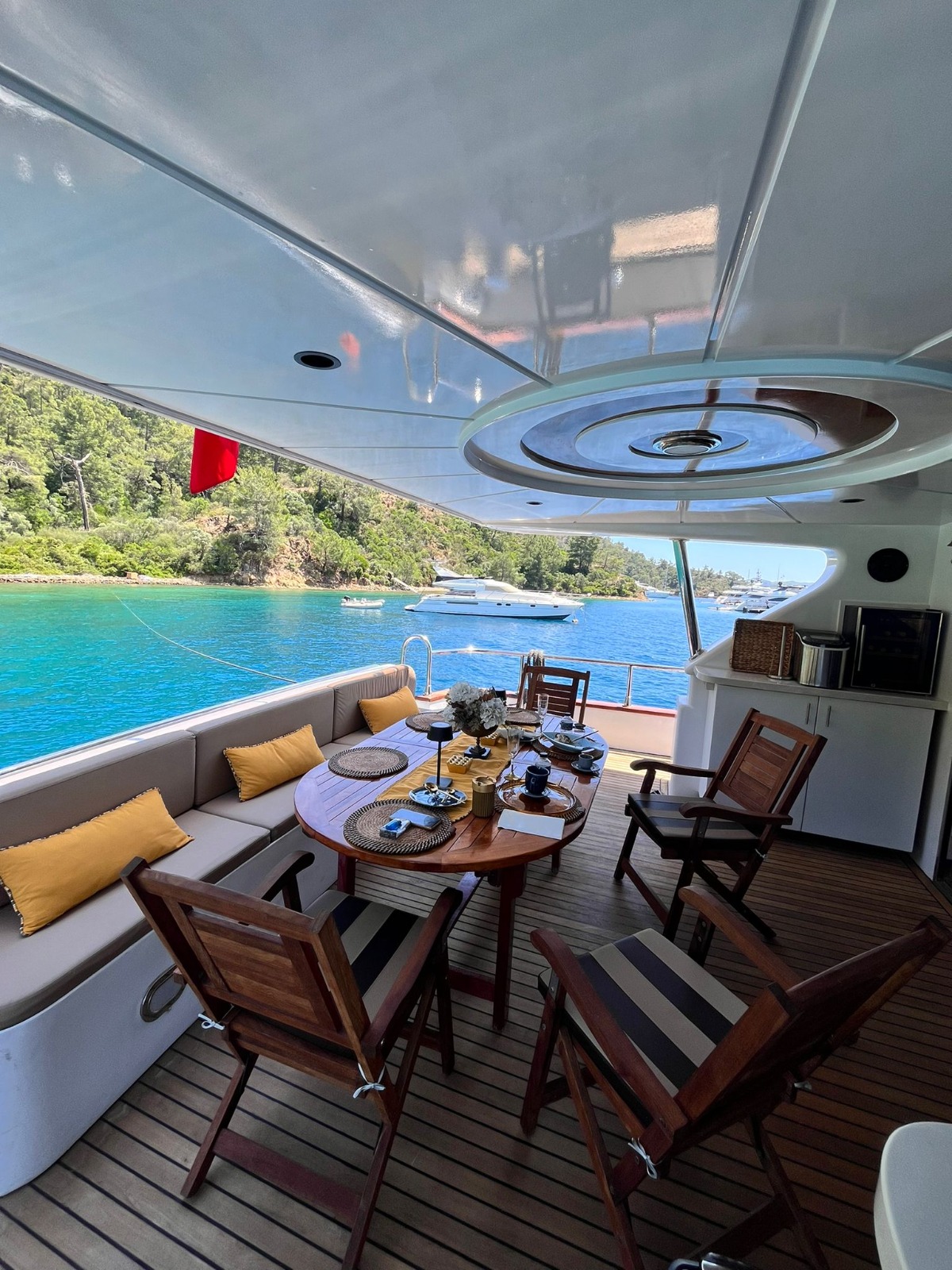 Ayem adlı Motor Yat 2000 yılında inşa edilmiştir . Yat 27 m uzunluğa, 6.1 m genişliğe ve 2.5 m su çekimine sahiptir. Ayem, 5 kabini ile 10 kişiye kadar tasarlanmıştır ve çeşitli günlük geziler için uygundur. Siz ve misafirleriniz için toplam 4 banyo bulunmaktadır. Yatta her biri 1350 hp (993 kW) gücünde 2 motor bulunmaktadır. Geminin azami hızı 20 knot'tır (37 km/sa). Bu yatta kaldığınız süre boyunca size tüm ihtiyaçlarınızı karşılamaya hazır deneyimli bir mürettebat eşlik edecektir.